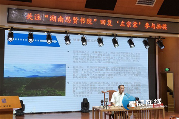 星辰在线8月22 日讯(星辰全媒体记者 唐茜茜)晚清中兴四大名臣之一左宗棠,靠着自己努力以及朋友的扶持达到事业的峰巅,被众人所识。那他的朋友到底有谁,是否能和他长期保持联系,是否对他事业都起到一定的推动作用呢?8月22日,第二十期思贤讲坛特邀著名作家、国内左宗棠研究领军人物徐志频老师在长沙图书馆隆重开讲,与星城市民分享“左宗棠和他的‘朋友圈’”。岳麓书院教授李兵担任嘉宾主持。