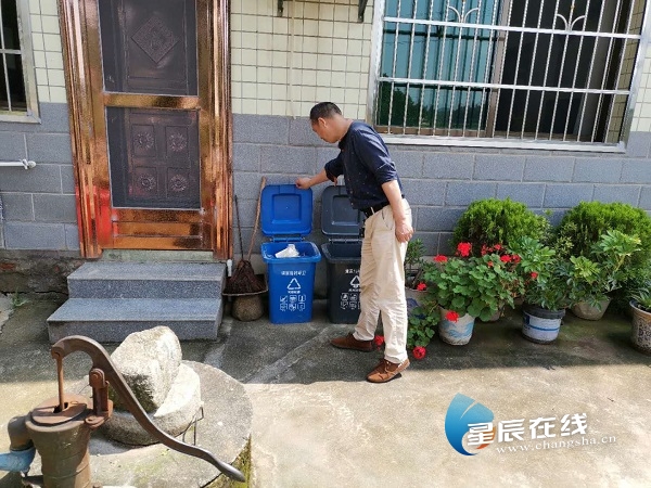 “像这种烂菜叶子就是湿垃圾,猪可以吃的,要放这个厨余垃圾桶,知道了吗?”该镇静慎村党员先锋志愿者翻开一户居民家门前的垃圾桶对主人耐心地讲解,“这里有个烟头没有清理,七月份垃圾分类评比项扣0.2分……”