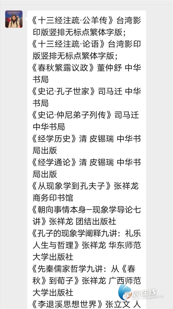 这个霸得蛮的湖南妹子一头扎进古书堆里,每天阅读大量的古文:《春秋》、《论语》、《大学》、《中庸》、《诗经》、《史记》、《庄子》、《管子》、《韩非子》、《后汉书》、《道德经》、《公羊传》……通过文史的记载去接近儒家先贤。