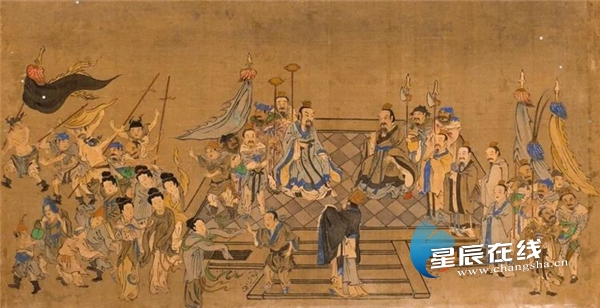 (明代《孔子圣迹图》之一夹谷会齐,孔子博物馆藏。)