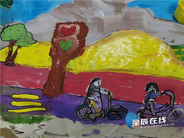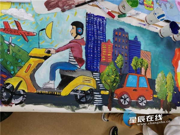 “在画上我们可以看到,每个小朋友虽然风格不太一样,但是他们都在表达一个共同的主题——低碳出行、绿色生活。”璐璐老师说。近年来,随着经济社会的发展,汽车保有量日趋增多,尾气排放、交通拥堵等因素给环境带来了很大的挑战。而长沙的这群“小画家”,用画作的形式,给大家描绘了一幅“绿色出行”的画面,湛蓝的天空下,每一个人都在为追求美好生活而奋斗着。