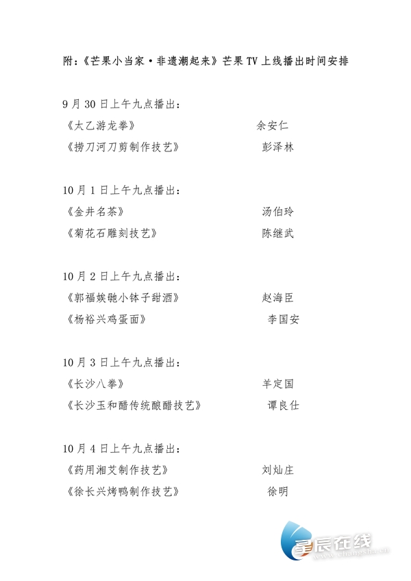 (《芒果小当家·非遗潮起来》芒果TV上线播出时间安排。图片、视频均由制作方提供)