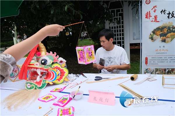 10月1日,2020年“我们的节日·国庆中秋——振兴传统工艺 留住老长沙味道”橘洲非遗体验周活动第二天,跟随星辰全媒体记者的镜头,向正在教市民游客扎花灯的靖港纸扎传承人万勇老师学习花灯制作吧。当然,趁着秋色正好,来橘子洲头的长沙市非遗馆亲自体验,更能感受浓浓节日情!
