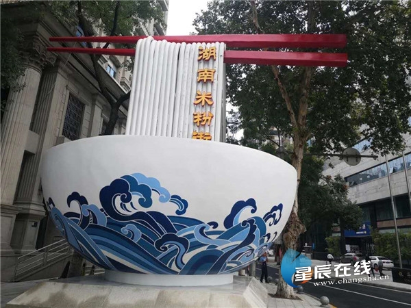 五一路入口,一个大碗与一束飞扬米粉的造型极其醒目,连接八一路的入口,复古风格门楼上立着“嗦粉”二字非常醒目。
