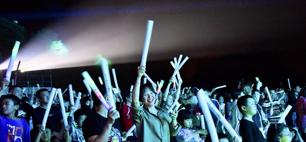 (紫龙湖畔,2020灰汤温泉民谣音乐节首日现场。星辰全媒体记者 覃翊/摄)