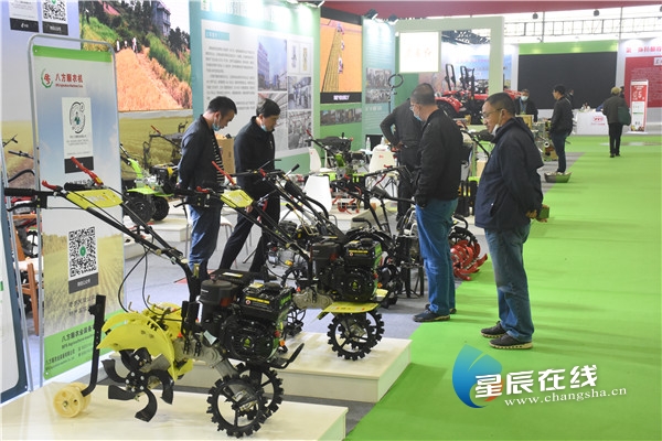 (品牌农机馆内,各种农机吸引市民驻足。)