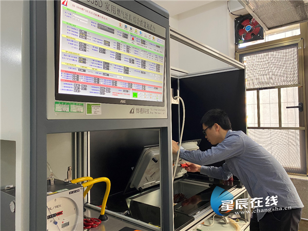 (湖南省长沙燃气燃具监督检测中心工作人员正在监测设备。)