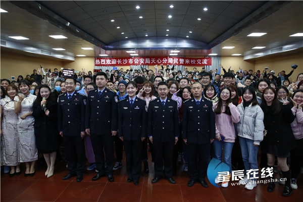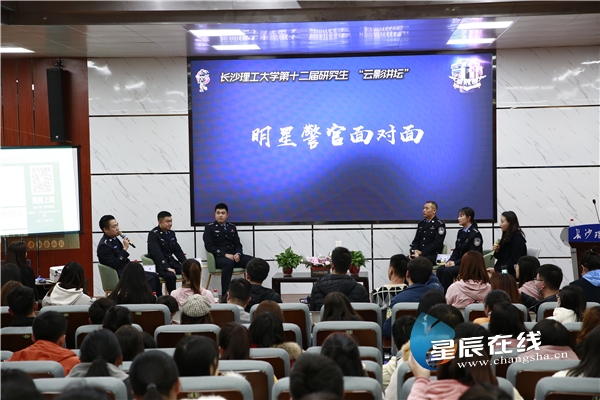 星辰在线12月4日讯(通讯员 陈慧)12月2日晚,受长沙理工大学研究生院的邀请,参与《守护解放西》拍摄的长沙市公安局天心分局民警张鹏、易点、刘毅昇、刘星宇、陈慧来到美丽的长理校园,与热情的在校师生们就反电诈、普法宣传开展“云影讲坛”研讨活动。