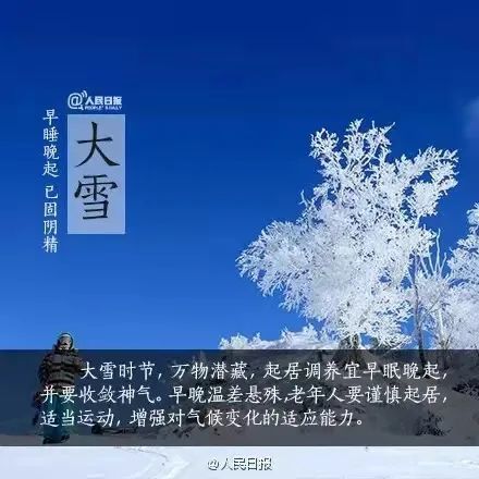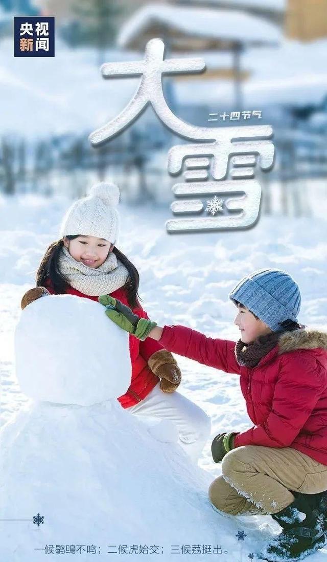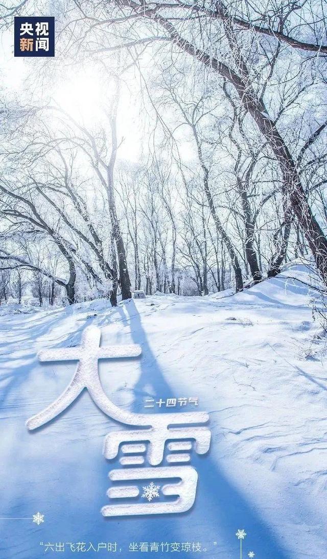 大雪,是二十四节气中的第21个节气,也是冬季的第3个节气。大雪,斗指癸,太阳到达黄经255度,交节时间为每年公历12月6—8日。大雪节气是干支历子月的起始,标志着仲冬时节正式开始。此时节,天气会比“小雪”节气时更冷,下雪的可能性也比“小雪”节气时更大了,往往会有“檐挂冰乳,阶铺银床”的景观。可见“大雪”与“小雪”“雨水”“谷雨”一样,是直接反映降水状况的节气。