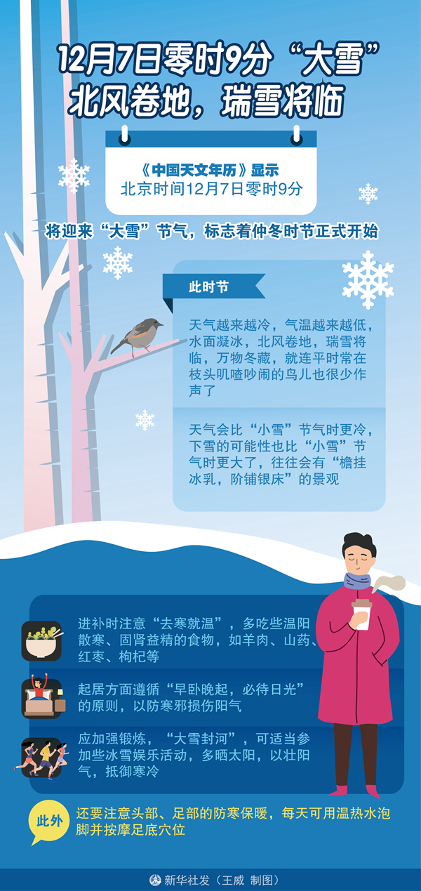 《中国天文年历》显示,北京时间12月7日零时9分将迎来“大雪”节气,标志着仲冬时节正式开始。