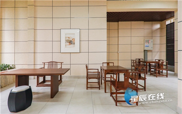 星辰全媒体记者看到,长房·潭房时代公馆的入园大堂层高达10米,这里既有全景监控中心,也有专门的物业服务台,在服务台的一侧,还有专门用来会客的茶座区域,中国风的屏风和茶几一应俱全。