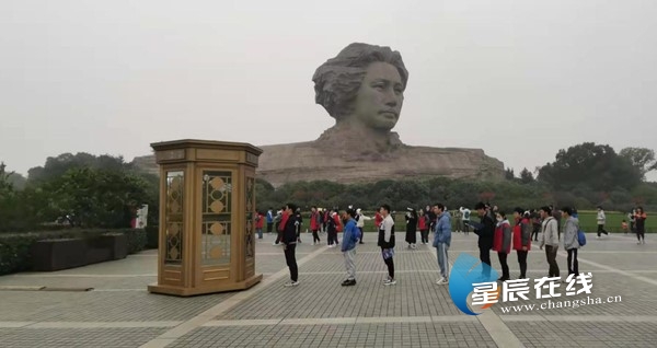 (长沙“朗读亭”第一站长沙橘子洲头。)