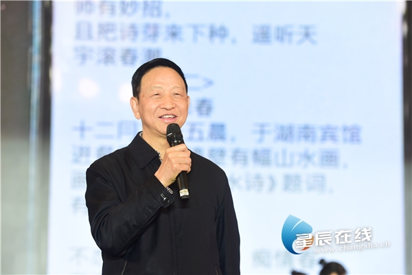 (中华诗词学会副会长、湖南省诗词学会会长彭崇谷现场赋诗两首。)