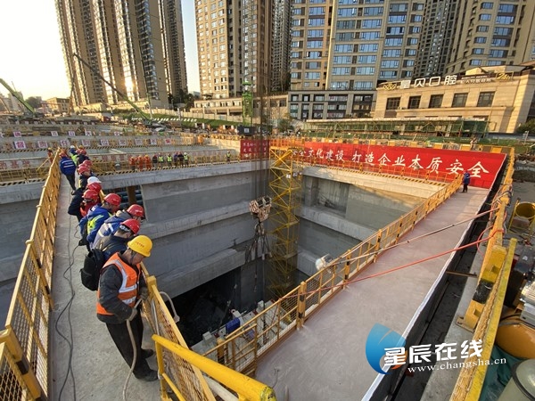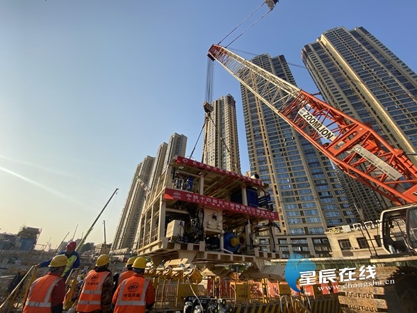 (长沙湘雅路过江通道盾构机首件下井。均由 星辰全媒体记者 岳珊 摄)