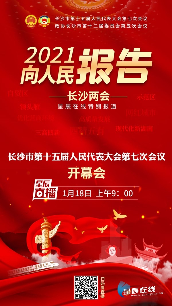 星辰在线1月17日讯(星辰全媒体记者 岳珊)长沙市第十五届人民代表大会第七次会议将于1月18日上午9:00在长沙人民会堂开幕。会议将听取长沙市人民政府工作报告;书面听取长沙市国民经济和社会发展第十四个五年规划和二〇三五年远景目标纲要草案;书面听取市人民政府关于长沙市2020年国民经济和社会发展计划执行情况与2021年国民经济和社会发展计划草案的报告;书面听取市人民政府关于2020年全市及市本级预算执行情况与2021年全市及市本级预算草案的报告。