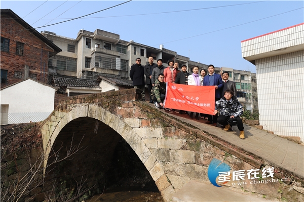 本次衡阳古桥考察,在省委宣传部的关心下,衡阳市委宣传部部长张霞、衡阳市社科联主席罗东云、衡山县委书记尹培国以及衡山县委和南岳区委宣传部门、文化部门的支持与协助下,衡山之行的路程安排早已确定。中南大学考察组由土木工程学院院长何旭辉教授带队,文学与新闻传播学院杨雨教授等师生七人参加,驱车两辆从长沙出发,耗时两个半小时,于上午十点半到达衡山县。在衡山县领导的引导下,终于到达本次考察主要目的地——马迹桥。