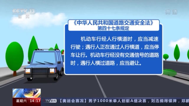 《中华人民共和国道路交通安全法》第四十七条规定:机动车行经人行横道时,应当减速行驶;遇行人正在通过人行横道,应当停车让行。机动车行经没有交通信号的道路时,遇行人横过道路,应当避让。