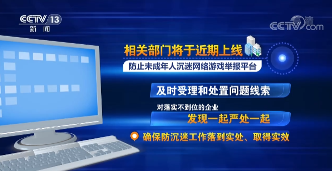 据了解,相关部门将于近期上线防止未成年人沉迷网络游戏举报平台,及时受理和处置问题线索,对落实不到位的企业,发现一起严处一起,确保防沉迷工作落到实处、取得实效。
