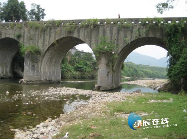 从魏家寨去石堤,要过一条小河叫锅巴溪,在明朝的时候,这是酉阳宣慰司和保靖宣慰司的分疆界线。清朝改土归流后,设秀山县和保靖县,锅巴溪也就成为了县界和省界。锅巴溪发源于保靖境内白云山,溪流不长,溪名也不文雅,但横跨溪流联接两省的石拱桥却很有名,也很文雅,叫做汇酉桥,意即锅巴溪过桥后汇入了酉水。桥中间左右两侧各有一石碑,名曰“汇酉桥万古不朽碑”,刻有时任保靖县侯补儒学正堂向永锐所撰碑文: