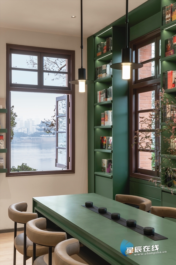 (乐之书店·橘洲店坐落于长沙橘子洲头美孚洋行旧址。)
