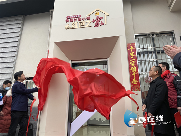 (“快递外卖小哥红色之家”楚湘站揭牌现场。)