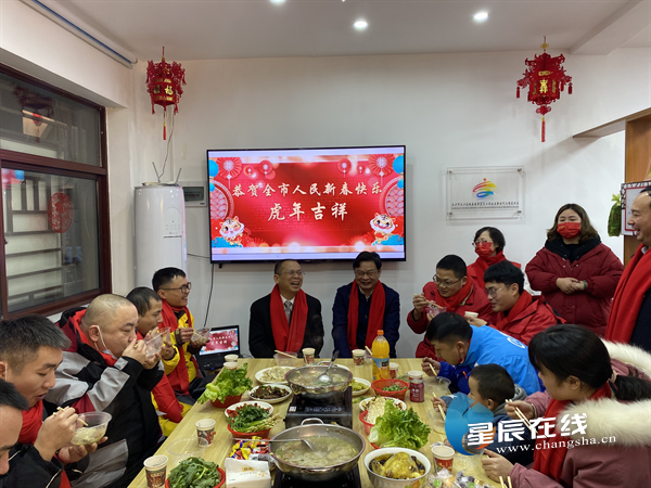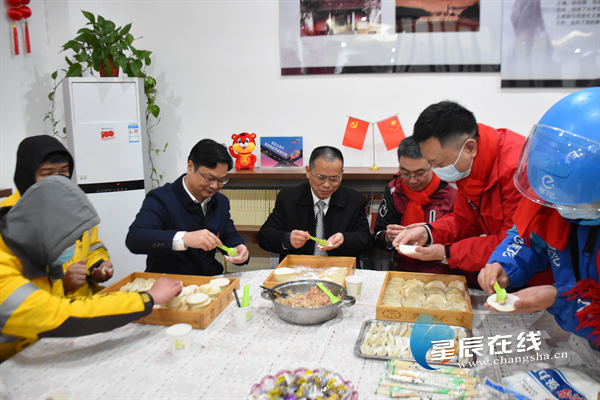 当天,“就在长沙过大年”活动同步举办,来自顺丰、圆通、饿了么等50余名快递外卖平台小哥代表欢聚一堂,罗缵吉等领导与快递外卖小哥包饺子,扯家常,现场暖意浓浓。随后罗缵吉一行前往城南路天心阁社区的“长沙快递外卖小哥红色之家”,与快递外卖小哥们一起吃团圆饭,大家纷纷表示,在“红色之家”真正感受到了家的红火、家的温暖。