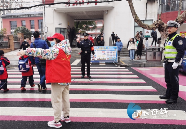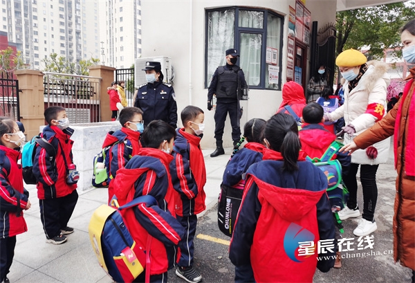 (春节开学一大早长沙公安派出所、内保、交警、特巡警等警种警力就提前上岗,早早地来到了辖区各中小学幼儿园,开启了新一年的“护学”模式。)