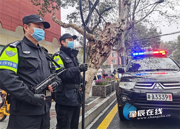 (长沙特警站岗守护学子安全。图片均为 通讯员 提供)