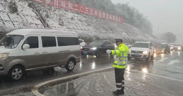 (雨花交警大队十三中队全员停休,全天不间断地在辖区易结冰路段巡查,发现有结冰迹象,立即上报,加派警力在重要路口进行疏导,确保车辆安全出行。)