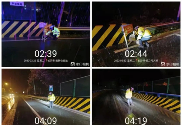 (2月22日,长沙县路口镇组织村巡查队员、两站两员、联校对辖区主次干道、易结冰桥梁、急弯陡坡进行安全巡查,并在易结冰桥梁、路段设置路障及温馨提示,提醒过往车辆减速慢行。)