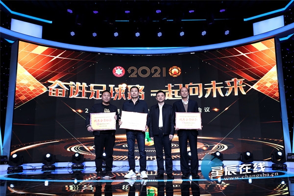 (会上宣读了湖南省足球协会2021年度表彰决定等,并举行了颁奖典礼。)