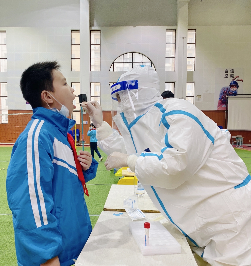 咸嘉湖街道的医护人员为辖区学生做核酸采样。长沙晚报通讯员 邵华 供图