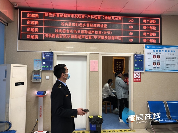 (3月30日,长沙市市场监督管理局对望月湖街道社区卫生服务中心、长沙观沙医院的核酸检测价格执行情况进行了现场检查。图片由长沙市市场监管局 提供。)