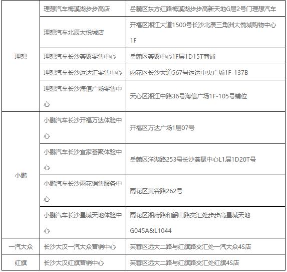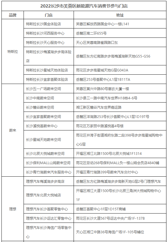 2022长沙市芙蓉区新能源汽车消费节参与门店 |