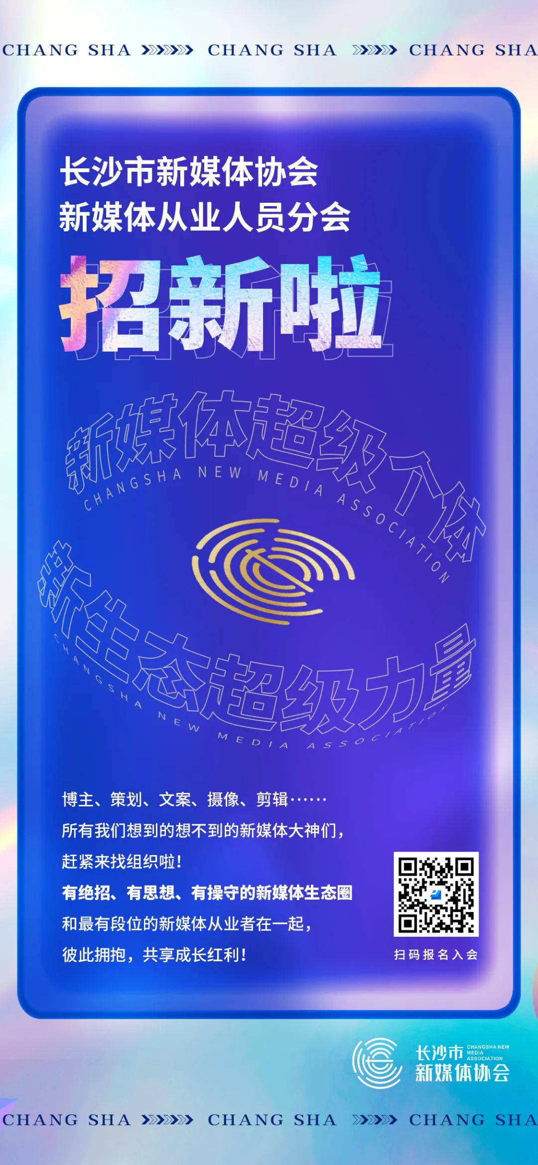我们将凝聚长沙新媒体超级个体,共同为新时代新媒体发声,共造新生态超级力量!优秀的新媒体从业人员,欢迎报名加入组织!让我们携手成长,共赴热爱!