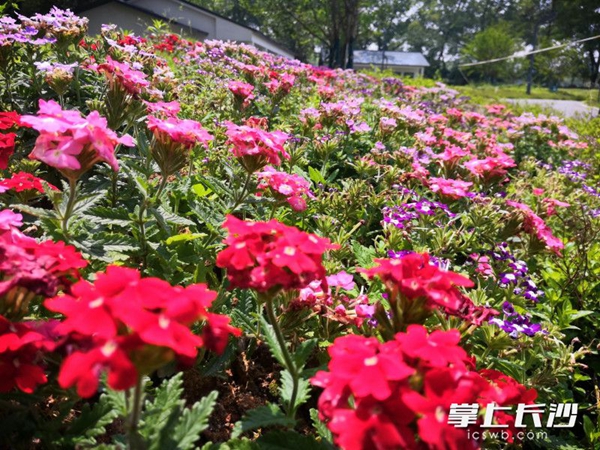 今日,记者在烈士公园看到,潇湘阁、72亩地、朝晖楼、原始部落、秋岛等地变得花团锦簇、色彩缤纷。在原有绿化的基础上,增加了美女樱、五色梅、翠芦莉、矮生马鞭草、筋骨草、木春菊、熊猫堇等宿根花卉。选用的宿根花卉品种不仅花期长、花色绚丽,而且能适应长沙暑热冬寒的气候,抗性强,养护简单。在几个重要节点,还种植了万花筒、六道木、火焰南天竹、微型月季等亮眼的彩叶或观花灌木,起到画龙点睛的效果。