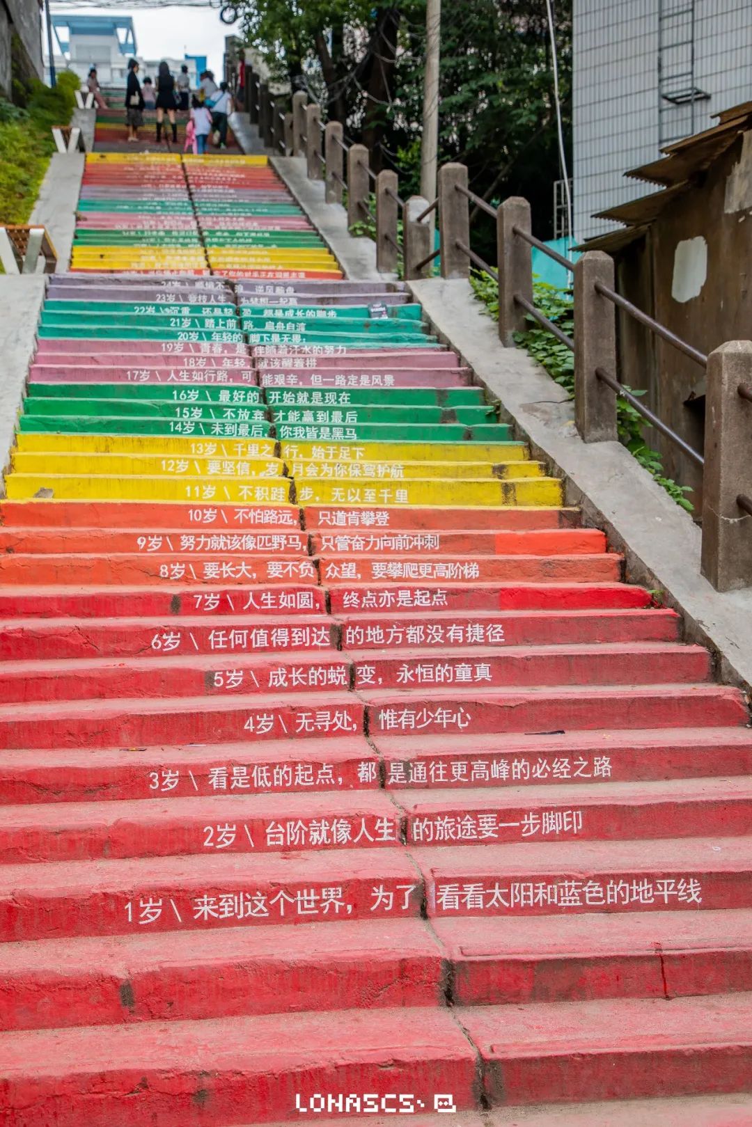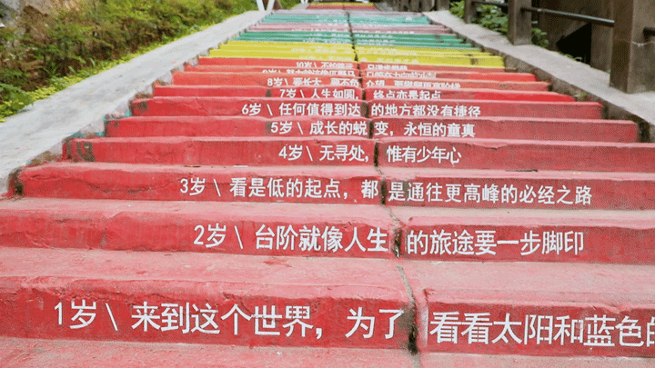 定位至雅塘村小学,左拐遇见俏皮涂鸦,便到达人生108楼梯啦!