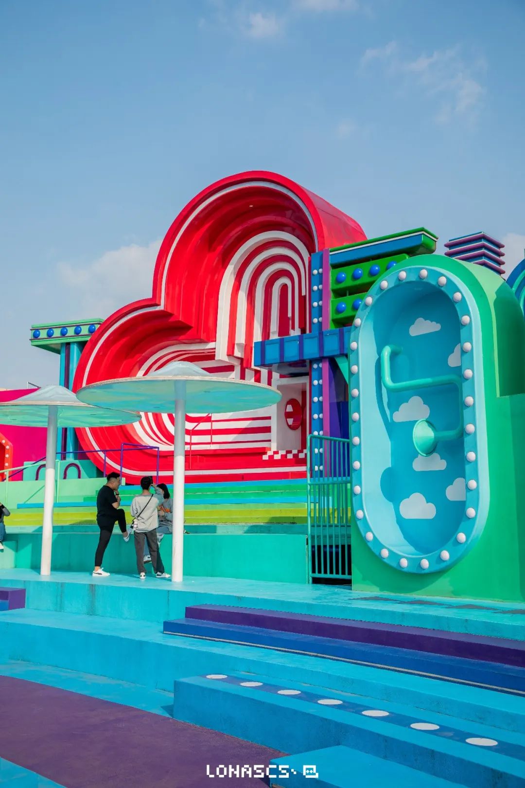 孩子们最爱的彩虹乐园来了!月亮岛星空露营公园里竟然还有一处萌娃乐园,整个乐园都是彩虹的配色,所有小朋友都会爱上这里!