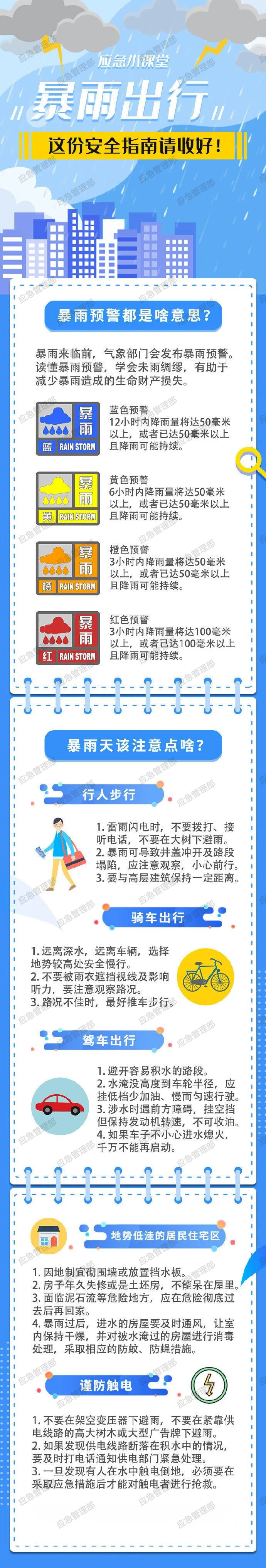 建议大家这个时段尽量减少外出活动。上下班的路途中,行人要注意避开积水路段,防范井坑;驾驶员朋友要放慢车速,保持安全车距。