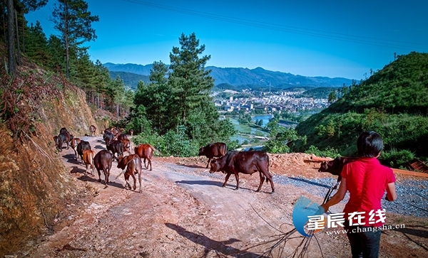 挎袋牵牛路鸟飞,去寻嫩绿养膘肥。