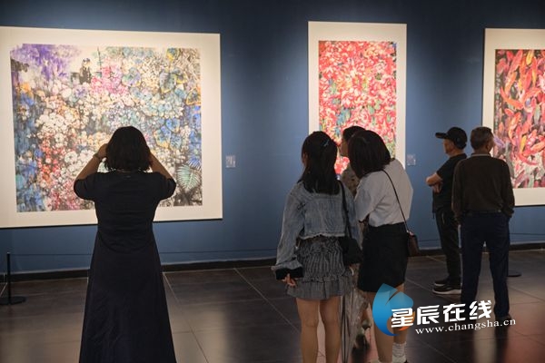 (6月5日,柯桐枝中国花鸟画大展在李自健美术馆开幕。)