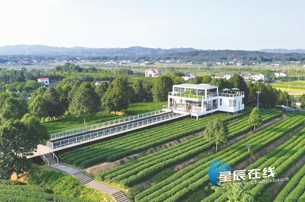 (长沙县金井镇三棵树茶园自然茶馆,茶田风光正好,品茗休憩,满室清香。 长沙县金井镇供图)
