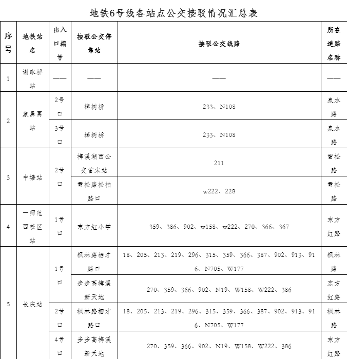 线路层面,全市共有188条公交线路可与地铁6号线进行接驳换乘,基本覆盖了城市的各个区域。共有74对公交站与地铁6号线形成接驳,平均换乘距离在150米以内,基本实现了“无缝换乘”。