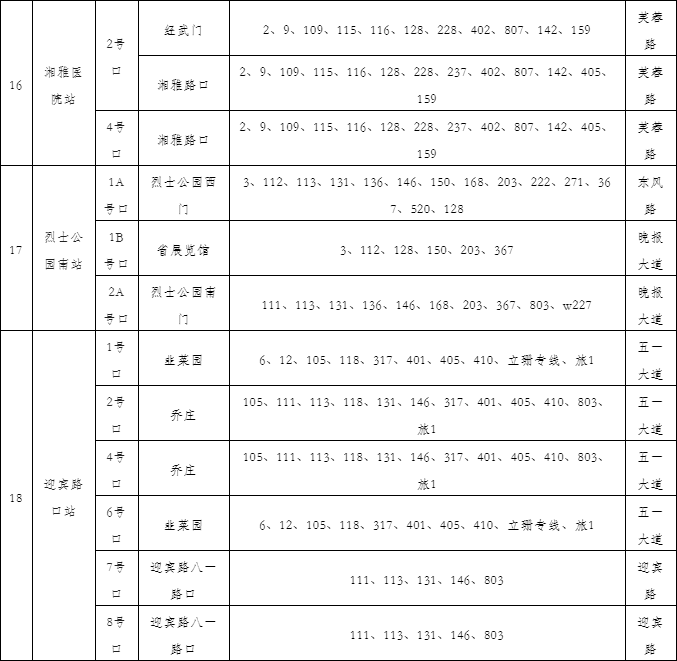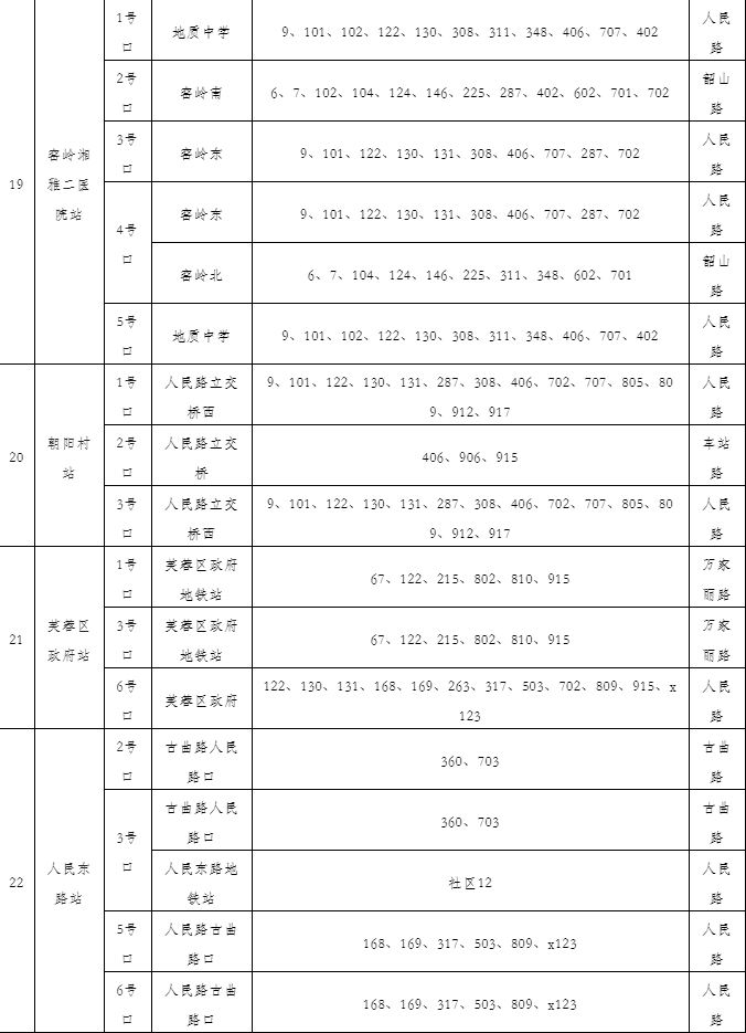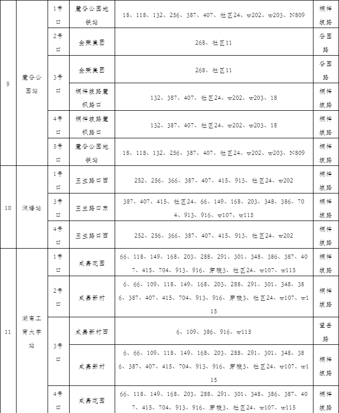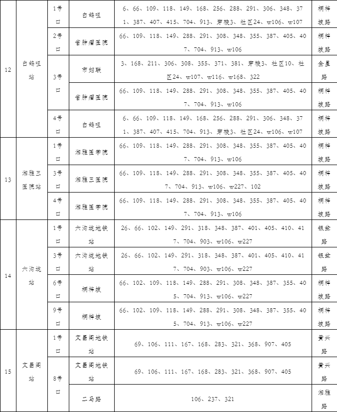 地铁车站层面,公交接驳力求“供需平衡”,越是中心城区、客流需求越大的地铁站点,配置的公交接驳设施越多。例如涧塘站、湖南工商大学站、白鸽咀站、湘雅三医院站、六沟垅站、迎宾路口站、窑岭湘雅二医院站、朝阳村站、芙蓉区政府站等地铁站周边接驳公交线路超过15条。