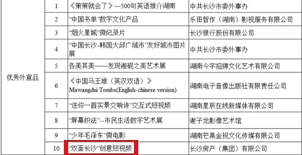 (长房集团《双面长沙》荣获长沙市2021年度对外传播十大优秀外宣品。)