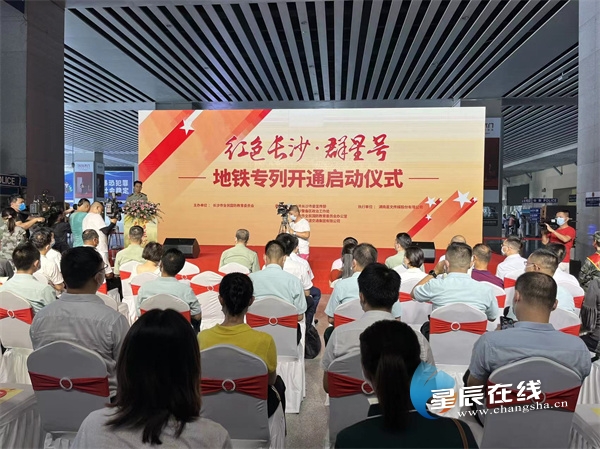 (“红色长沙·群星号”地铁专列启动仪式现场。)
