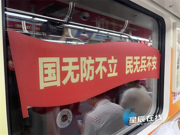 (“红色长沙·群星号”地铁专列上的国防元素。)
