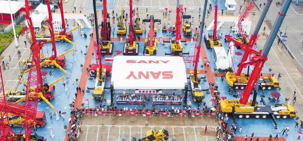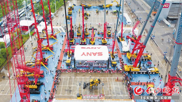 (2021长沙国际工程机械展览会上,三一重工震撼亮相。)