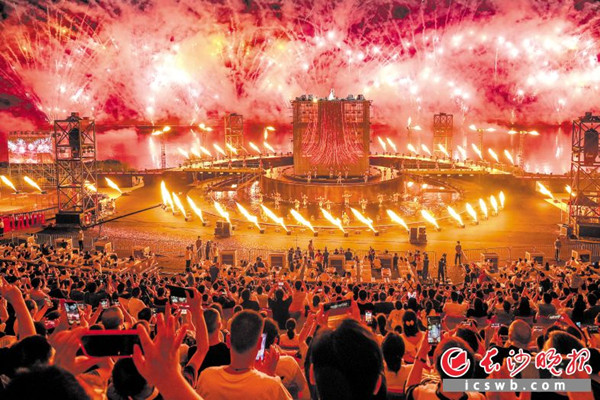 星辰在线7月31日讯 据(长沙晚报全媒体记者 颜开云 通讯员 李小雷)报道 这绝对是一场惊艳的烟火秀,又不只是单纯的烟花表演,它融合了声、光、影、剧、焰等诸多元素,令现场成千上万名观众欢呼喝彩。30日晚,“焰遇浏阳河”大型沉浸式烟火秀上演,这也是浏阳花炮观礼台改造升级成“天空剧院”后的首秀。