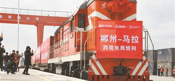 2021年3月5日上午,郴州首趟中欧班列开行。 通讯员 摄